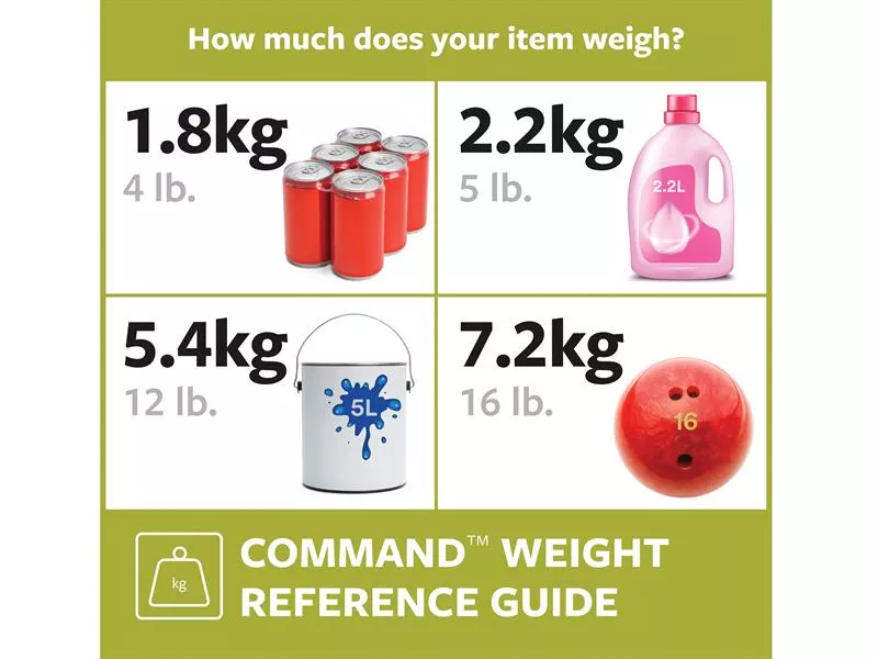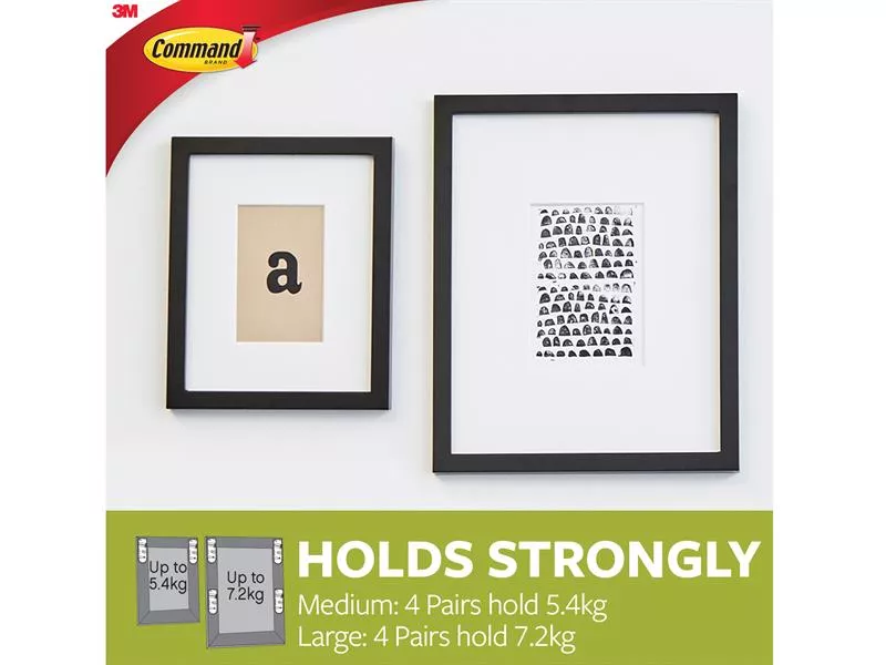 Medium picture hanging strips hold most frames up to 45 x 60cm.