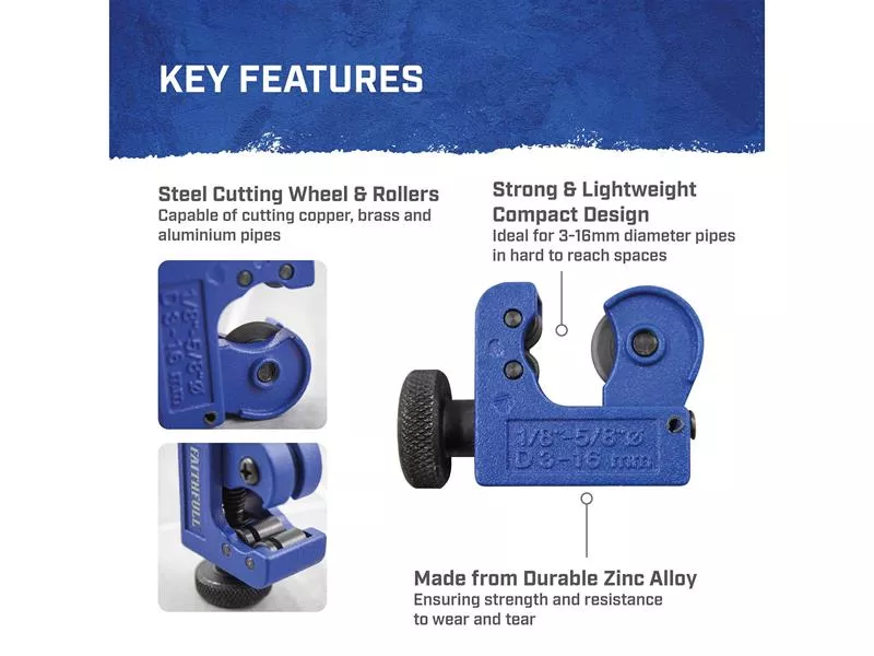 Ideal for cutting copper, brass, aluminium, and thin-walled steel pipes. Perfect for plumbing, and general maintenance tasks.