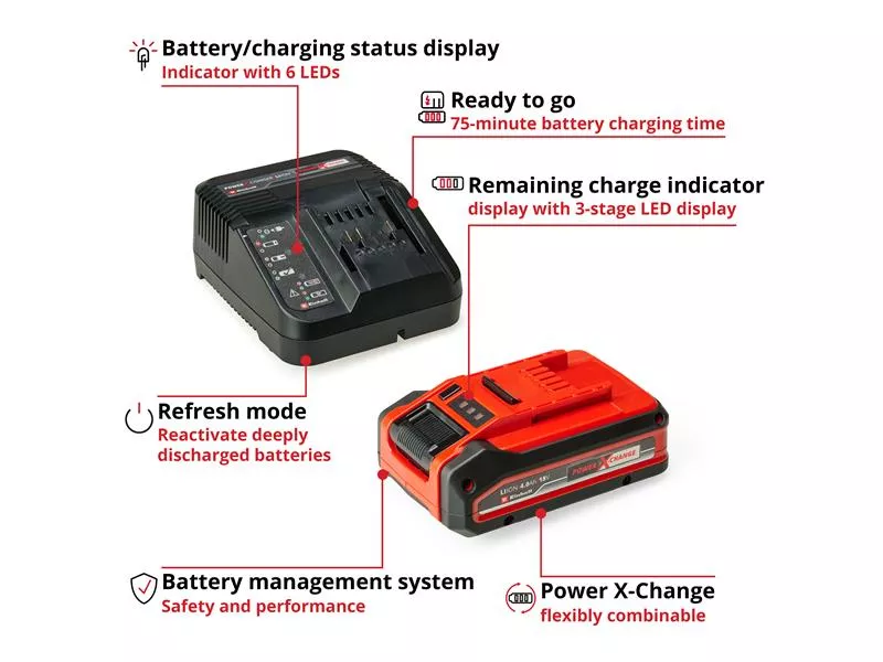 This Einhell PLUS Power-X-Change Starter Kit contains the following: