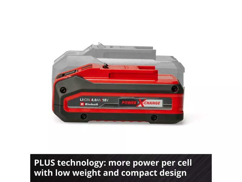 1 x 18V 4.0Ah Power X-Change Li-ion Battery features a 7-in-1 ABS: Active Battery Management System and a 3-Step LED battery control. The microprocessor controls key parameters like temperature and voltage, and even a deeply discharged battery can be charged in repair mode, which offers a long working battery life. The high-quality Li-ion battery cells provide nearly no self-discharge and the rubber-coated housing gives high impact protection and a high grip. It also has a recessed grip to ensures good ergonomic handling.