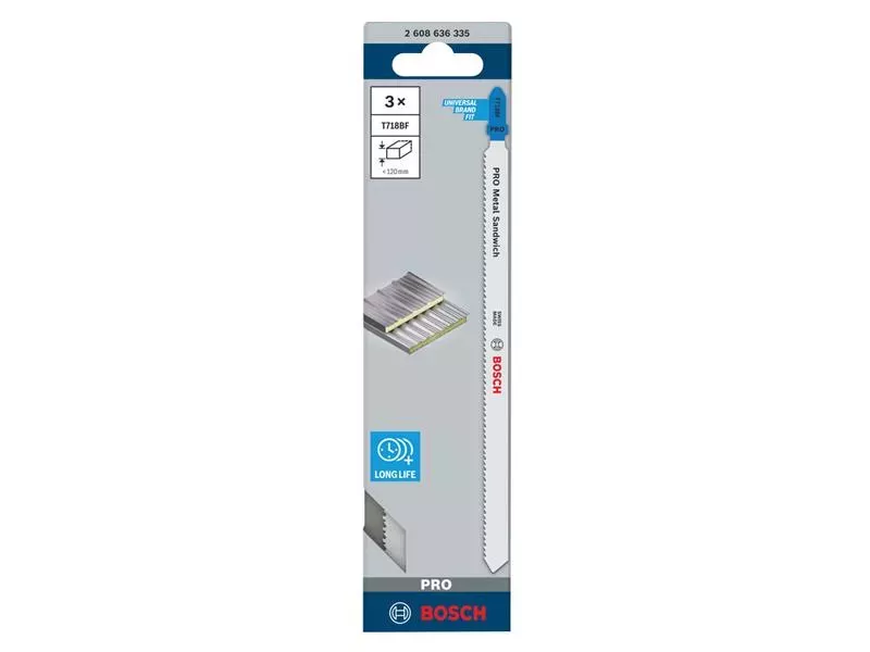 Cutting metal sandwich requires a jigsaw blade that’s not only strong, but also long enough to cut through hard, multi-layered material. Like the durable PRO Metal Sandwich T718BF. We made it 180mm long to help you cut through metal sandwich with ease – time and again. Fits all T-shank jigsaws.