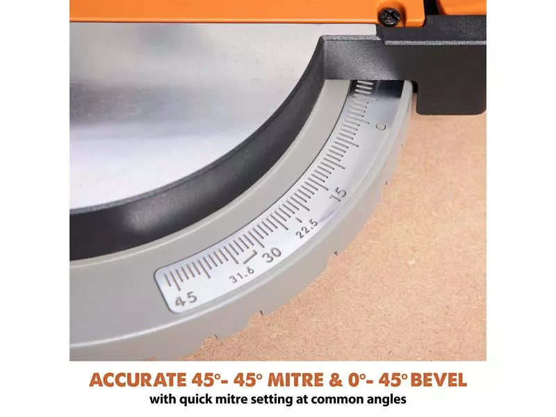 Positive Mitre Stops: 0°, 5°, 10°, 15°, 20°, 25°, 30°, 35°, 40°, 45°