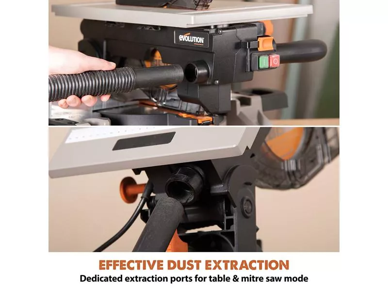 The Evolution R210MTS-G2 Combination Saw is a multi-function convertible table saw and mitre saw that cuts almost everything. Engineered for lasting performance and dependable accuracy. A precision-machined die-cast top plate provides a stable, level surface for smooth, accurate cuts every time. The durable die-cast aluminium base with rubber pad feet ensures rock-solid stability on any workbench or jobsite