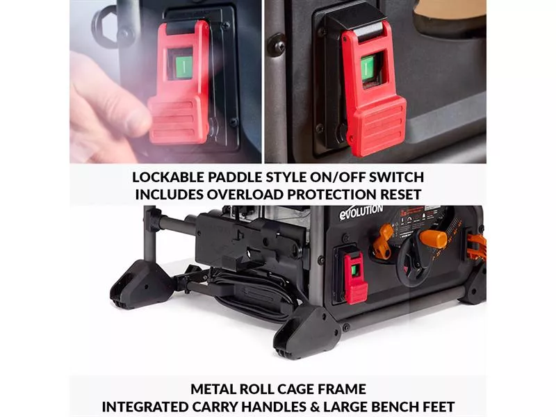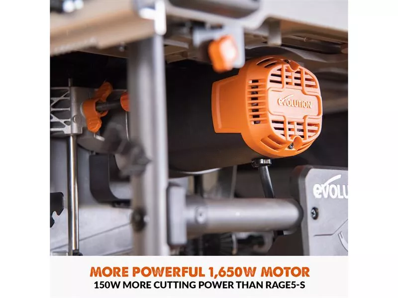 The Evolution R255TBL Portable Table Saw has a powerful 1,650W motor that features thermal overload protection and a paddle style emergency stop. The transparent blade guard offers improved cut visibility, and the Quick Release Riving Knife features offset-angle and lateral adjustment for safer cutting. The new motor housing offers improved dust extraction, better access for cleaning, and blade swaps are easier than ever before, just pop out the metal throat plate.