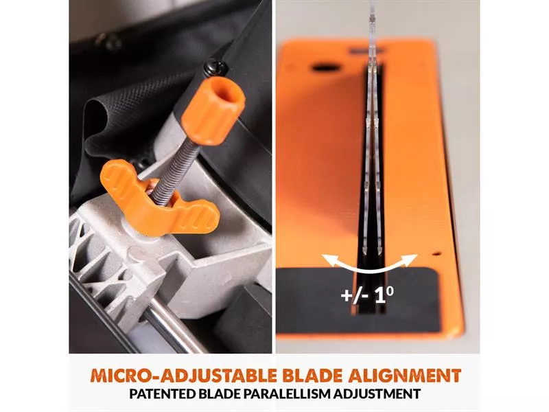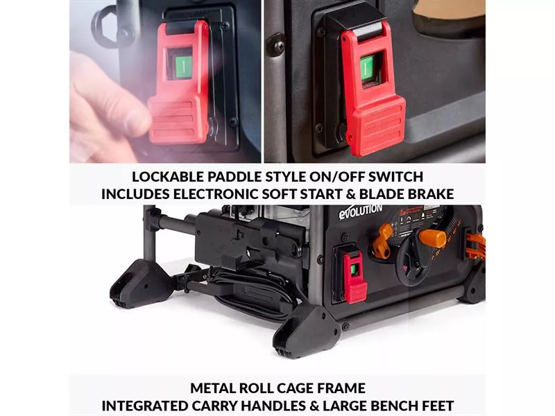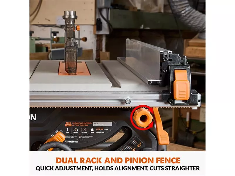 The Evolution R255TBLX+ Portable Jobsite Table Saw is more accurate. A clean sheet design from top to bottom, it features a dual rack & pinion rip-fence for accurate, repeatable cuts. A new gear-driven blade height and bevel adjustment mechanism offers repeatable micro-adjustment. Our patented blade-to-rip-fence parallelism adjustment allows for perfectly aligned cuts in full-size sheets without binding or kickback. The R255TBL+ also features a Metal Throat Plate with corner height adjustment. All this comes together to make the R255TBL+ the most accurate and adjustable table saw we've ever made.