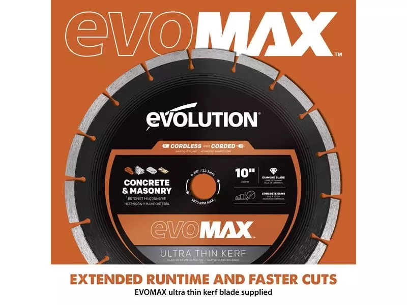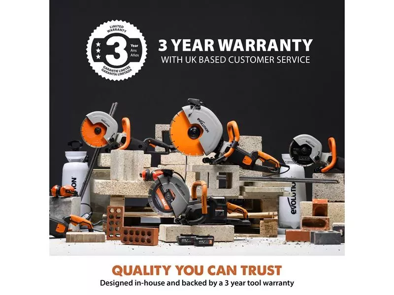 The Evolution R260DCT-Li Cordless Disc Cutter is designed for the trade. It features automatic, water-fed dust suppression. This lets the water flow as soon as the blade starts spinning and cuts the water off when you release the power. There's also an independent flow rate control valve, so you can 'set and forget' to get perfect cuts every time.