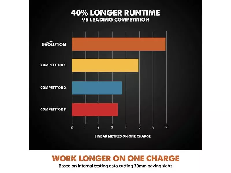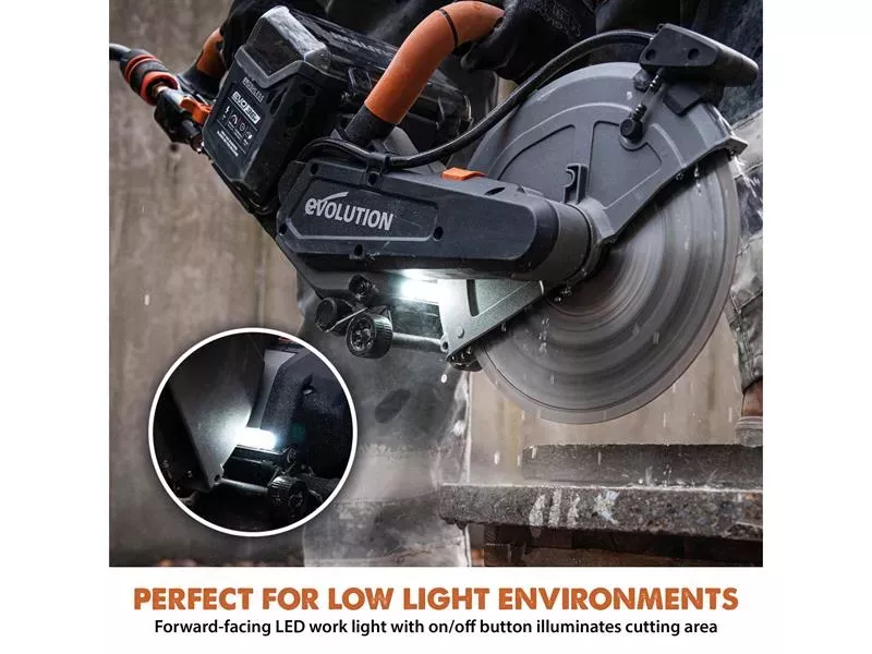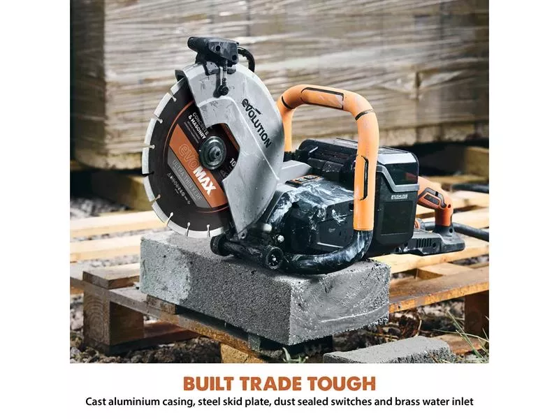 The Evolution R260DCT-Li Cordless Disc Cutter is designed for the trade. It features automatic, water-fed dust suppression. This lets the water flow as soon as the blade starts spinning and cuts the water off when you release the power. There's also an independent flow rate control valve, so you can 'set and forget' to get perfect cuts every time.