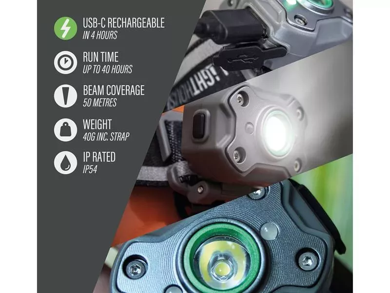 Designed with convenience and comfort in mind, the Lighthouse Mini features an adjustable head strap and a 180-degree tilting LED which can be moved in increments to provide a directed beam. For added functionality the unit can be removed from the strap and clipped on to a baseball cap for casual use. It can be charged using the USB Type C cable included, so you can easily recharge it on the go.
