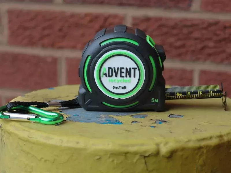 The Advent Recycled Tape Measure is made from 100% Recycled (ABS Plastic and TPE) and is 100% recyclable. Its nylon amour coated blade has a reverse printed easy read black blade with both metric and imperial blade markings. The 32mm wide blade offers 4m of standout and is fitted with a true zero end hook. Fitted with a carabiner safety belt clip.