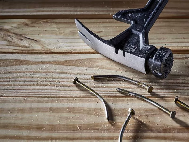 The DEWALT® Rip Claw Demolition Hammer has a one piece steel construction and thick, heat treated steel shaft for all round jobsite durability. Its balanced design and extended claw provide a smooth swing and easy board grabbing. The large, milled strike face quickly breaks through drywall, while Tri-Pull technology allows for versatile nail removal.