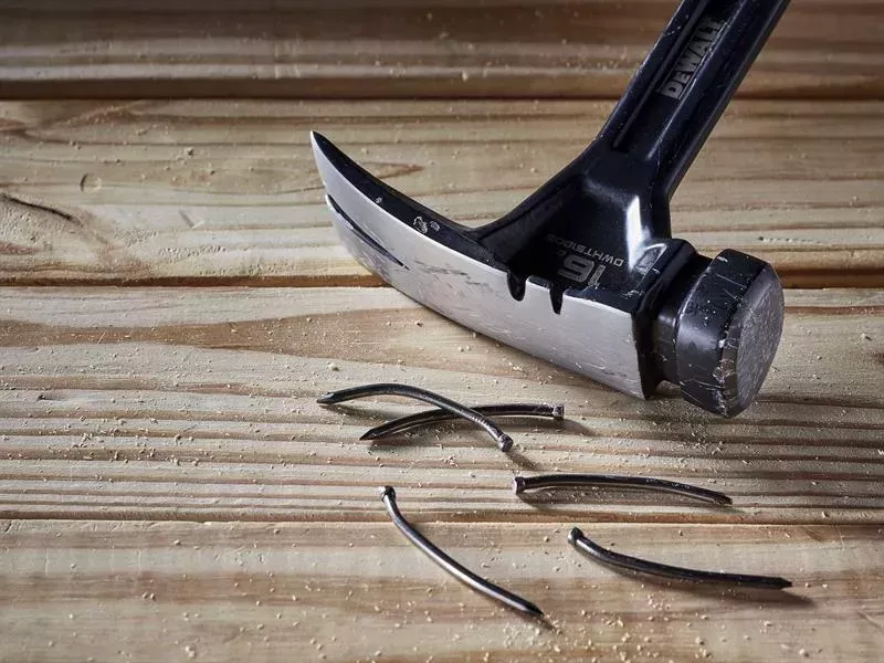 DEWALT® Rip Claw Hammer for quick and easy trim removal, nail removal, etc. Delivers a steady, smooth swing with its balanced design. Depend on this hard-wearing tool for long-lasting performance with its one-piece steel construction and a built-in magnetic nail start for one-handed nail placement. It also features a multi-use side nail puller for efficient and easy pulling.
