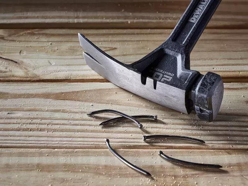 DEWALT® Rip Claw Hammer for quick and easy trim removal, nail removal, etc. Delivers a steady, smooth swing with its balanced design. Depend on this hard-wearing tool for long-lasting performance with its one-piece steel construction and a built-in magnetic nail start for one-handed nail placement. It also features a multi-use side nail puller for efficient and easy pulling.