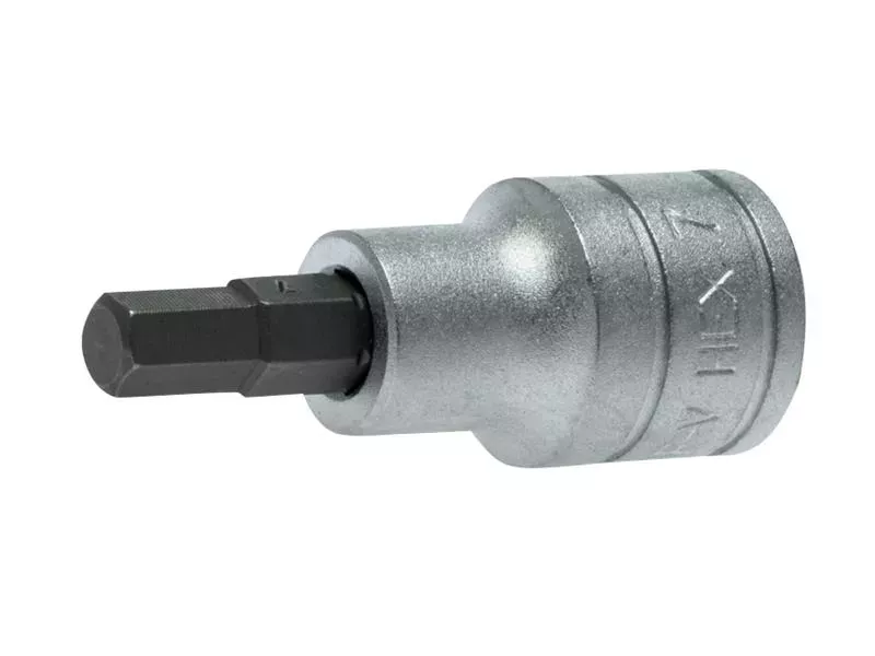 A professional, S2, 1/2in Drive hexagon bit socket produced in accordance with ISO 9000 and AS954 specifications for increased torque and reduced risk of rounding fasteners. Manufactured from chrome vanadium steel with a satin finish.