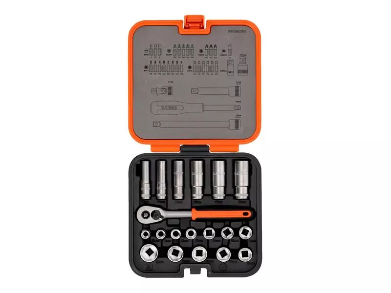 The Bahco S51MC3H 3/8in Drive Standard and Deep Socket Set contains sockets made from high performance 50BV30 alloy steel with a micro matt finish. Conforms to ISO 1174 and DIN 3120. Supplied in a high density polythene (HDPE) case. Contains: