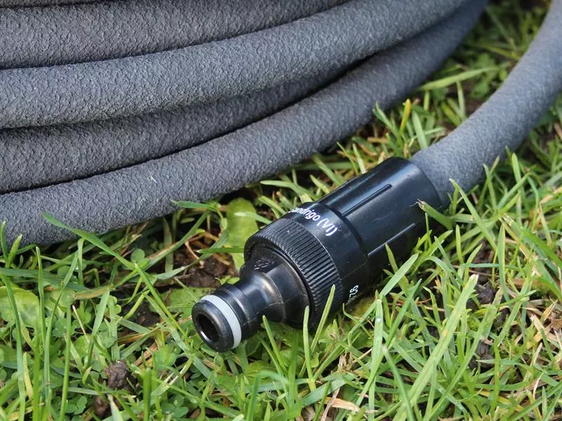 The pressure reducer ensures consistent water distribution along the entire hose. Made from recycled rubber, the hose is UV-resistant and treated to prevent algae formation.