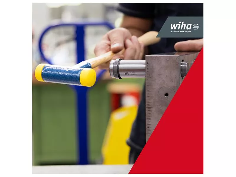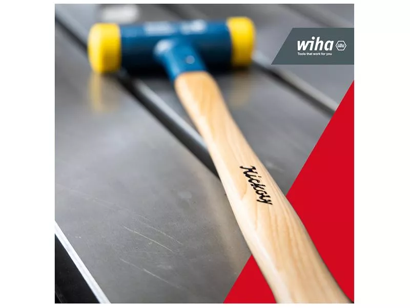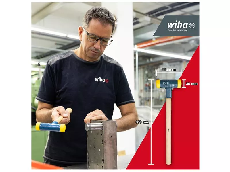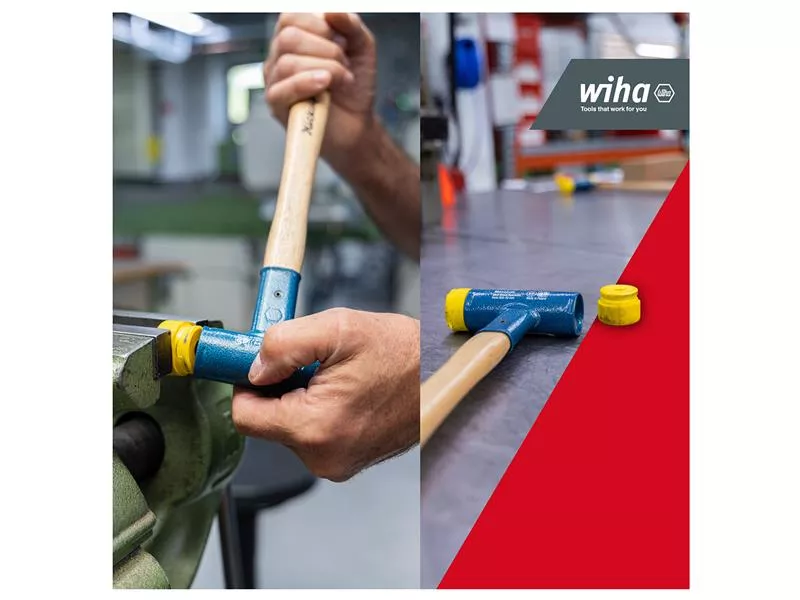 The Wiha Soft-Face Dead-Blow Hammer comes with a yellow, medium-hard hammer head for tool and machine engineering, car repairs, sheet metal and assembly work.