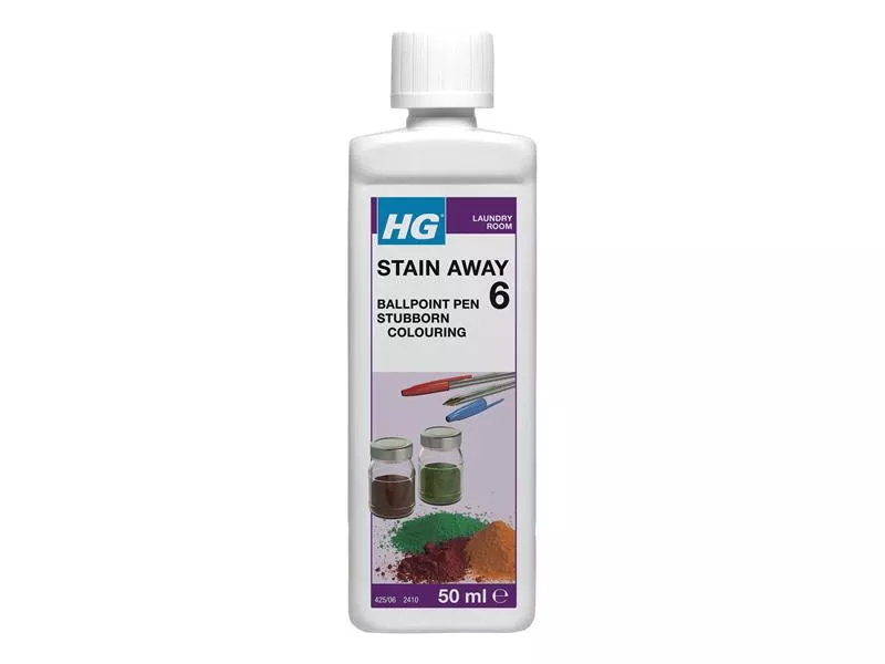 HG Stain Away No.6 removes ballpoint ink, stubborn colourants, beer and liqueur stains from clothes.