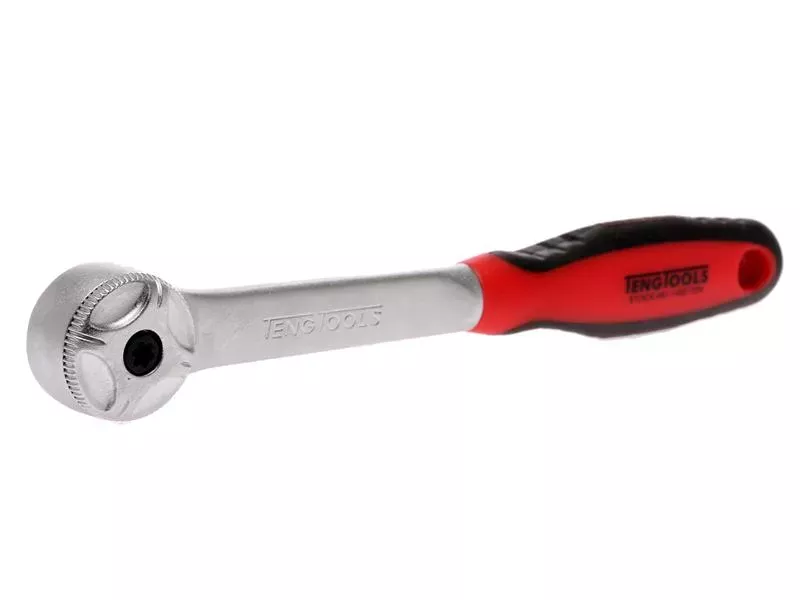 This Teng 1/4in Drive Steel Ratchet is manufactured from chrome vanadium steel for optimum durability. It is ideal for use in confined spaces, with 72 teeth and 5° increments. Several teeth are engaged simultaneously, which means a greater force can be used without risk of damage.