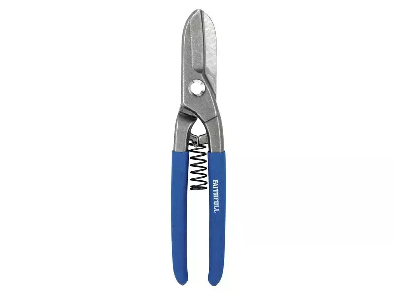 These Faithfull Straight Tinsnips are crafted from 55# carbon steel through integral forging and pressing, these tin snips feature a natural surface finish. The handles are made from durable PVC plastic, ensuring a comfortable grip. Designed for cutting sheet metal with a scissor-like action, these snips provide maximum cutting power and control using hand leverage alone.