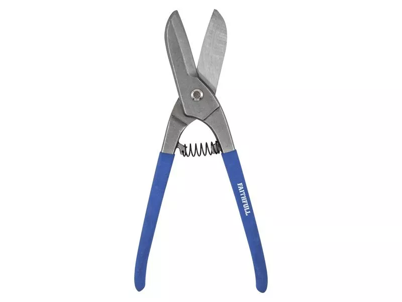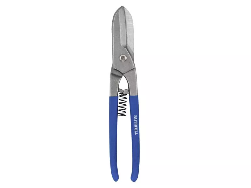 These Faithfull Straight Tinsnips are crafted from 55# carbon steel through integral forging and pressing, these tin snips feature a natural surface finish. The handles are made from durable PVC plastic, ensuring a comfortable grip. Designed for cutting sheet metal with a scissor-like action, these snips provide maximum cutting power and control using hand leverage alone.