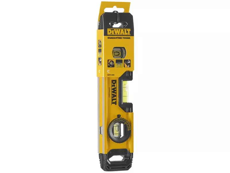 The DEWALT Torpedo Level has an extruded aluminIum body with rare earth magnets and a V-Groove base for use on metal and rounded surfaces. The aluminium extruded box beam body provides ultimate durability and avoids twisting.