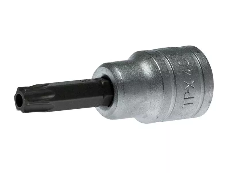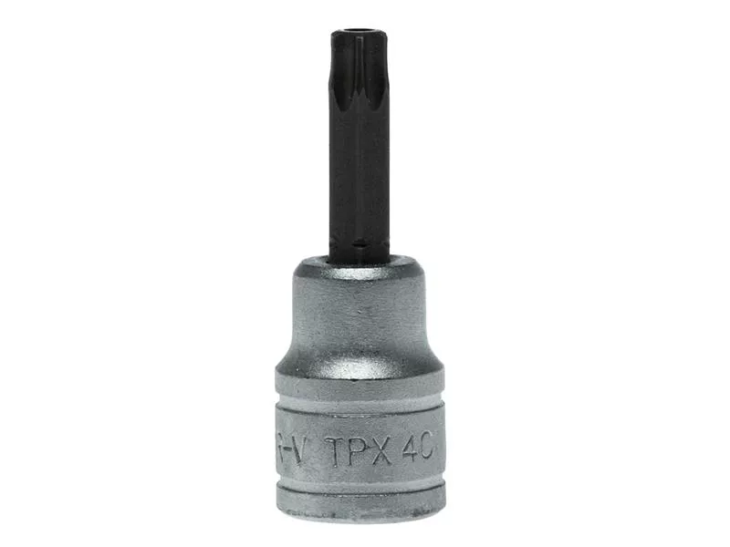 This 3/8in Drive Tamper-proof TORX (TPX) socket bit is manufactured from chrome vanadium steel for strength and durability, with an attractive satin finish. The socket is conveniently marked with its size for easy identification.