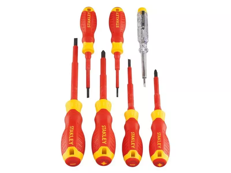 STANLEY® VDE Screwdrivers have a chrome vanadium steel blade with a hardened tip for increased durability and reduced wear. The tapered, slim insulation allows access without modification and safe working to 1,000V. Fitted with a large diameter, bi-material handle for excellent torque transmission and control. Tested to 10,000V, rated to 1,000V AC.