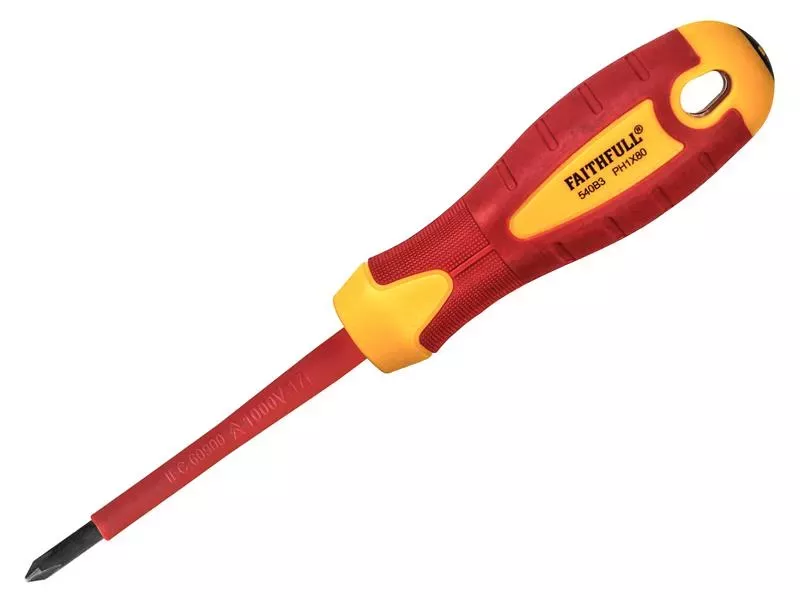 Faithfull Phillips Tip VDE Screwdrivers are manufactured to EN 60900:2012 and individually tested at 10,000V before leaving the factory, guaranteeing a safe working limit of up to 1,000V to provide the maximum level of safety.