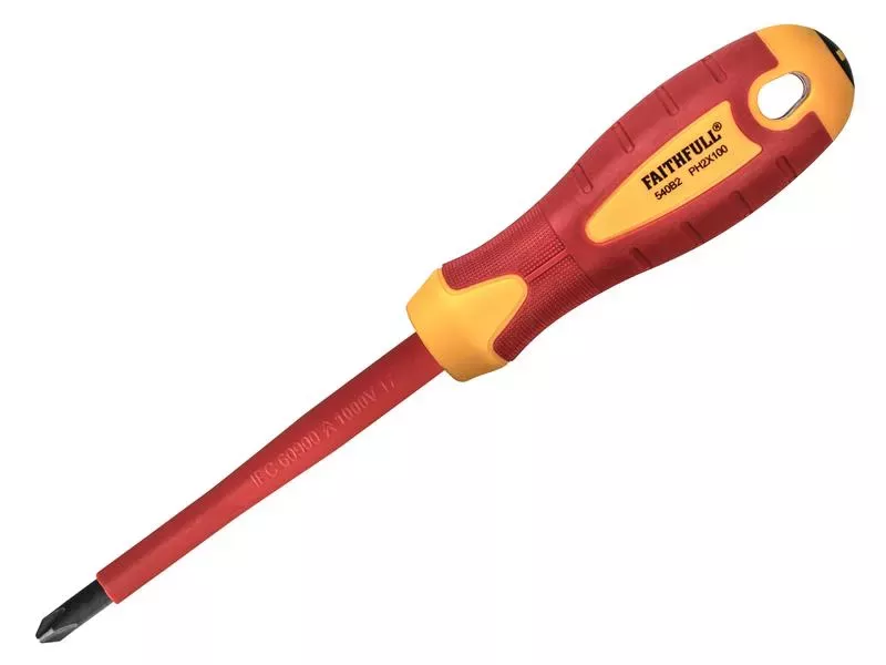 Faithfull Phillips Tip VDE Screwdrivers are manufactured to EN 60900:2012 and individually tested at 10,000V before leaving the factory, guaranteeing a safe working limit of up to 1,000V to provide the maximum level of safety.