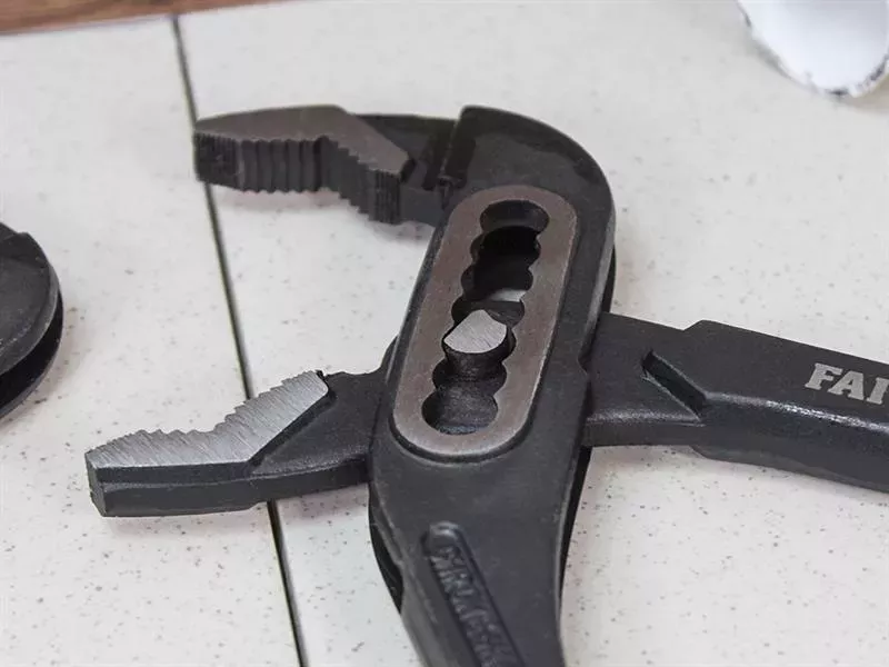 The Faithfull Water Pump Pliers are suitable for gripping pipes, nuts, bolts and irregularly shaped objects. The offset jaws are angled to ensure a positive action and the long handles provide extra leverage and added grip when pressure is applied. The sliding pivot slip joint on the lower jaw enables rapid adjustment to 7 pre-set positions with a maximum jaw opening of up to 60mm. Manufactured from chrome vanadium steel with vinyl soft feel coating for user comfort.