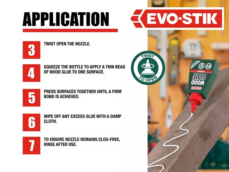 EVO-STIK Wood Glue Interior is an extra strong, fast-setting glue that dries to form a bond stronger than the wood itself. It dries to a clear finish that can be sanded, painted or stained and is suitable for all types of wood.